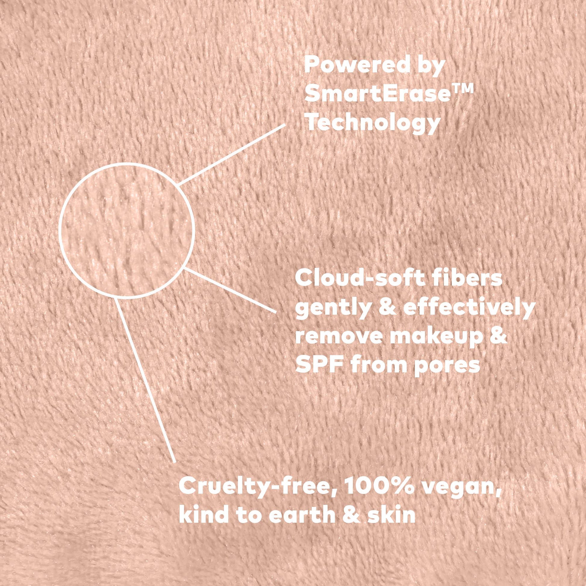 Erase all makeup with JUST WATER™ including waterproof. Our patented, water-activated makeup remover uses cloud-soft fibers to gently & easily remove all cosmetics & sunscreen from pores. 2 in 1 benefit: one side removes makeup & one side exfoliates.