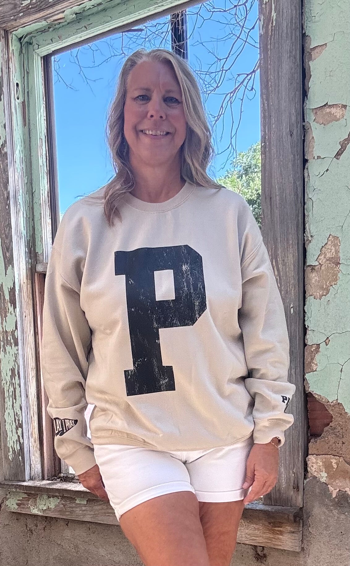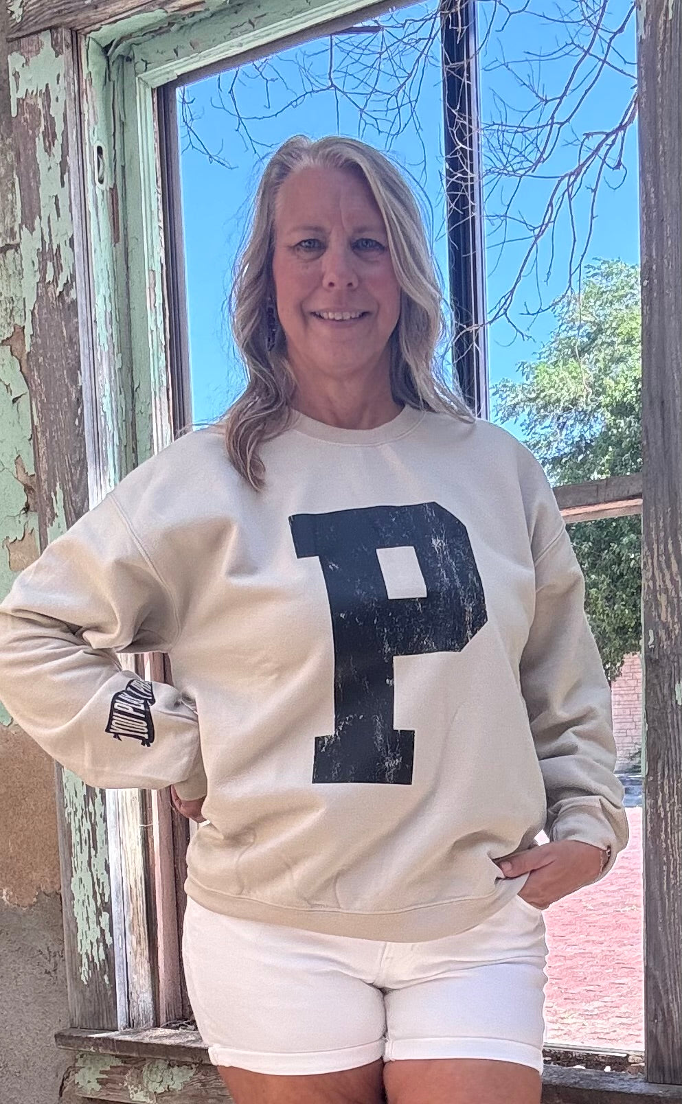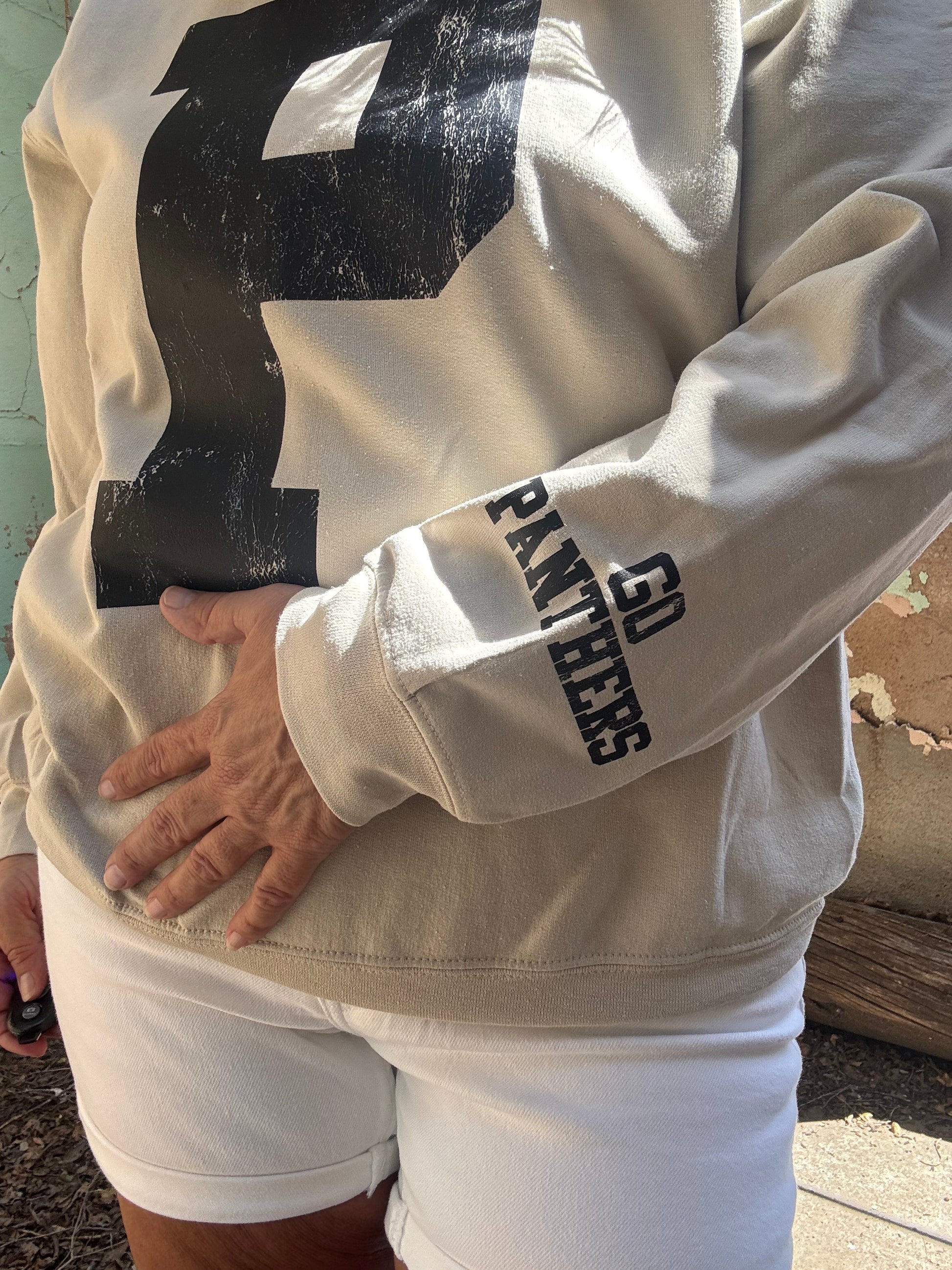 Customize this cream basic crewneck sweatshirt with your team/ school letters and color. Two letters/numbers on the front custom print is the best to keep the size of the large print, but some three letter designs will work. Please message us with details so we can let you know if your 3 letter design will work. Low minimum of 6 per team/school custom selection.