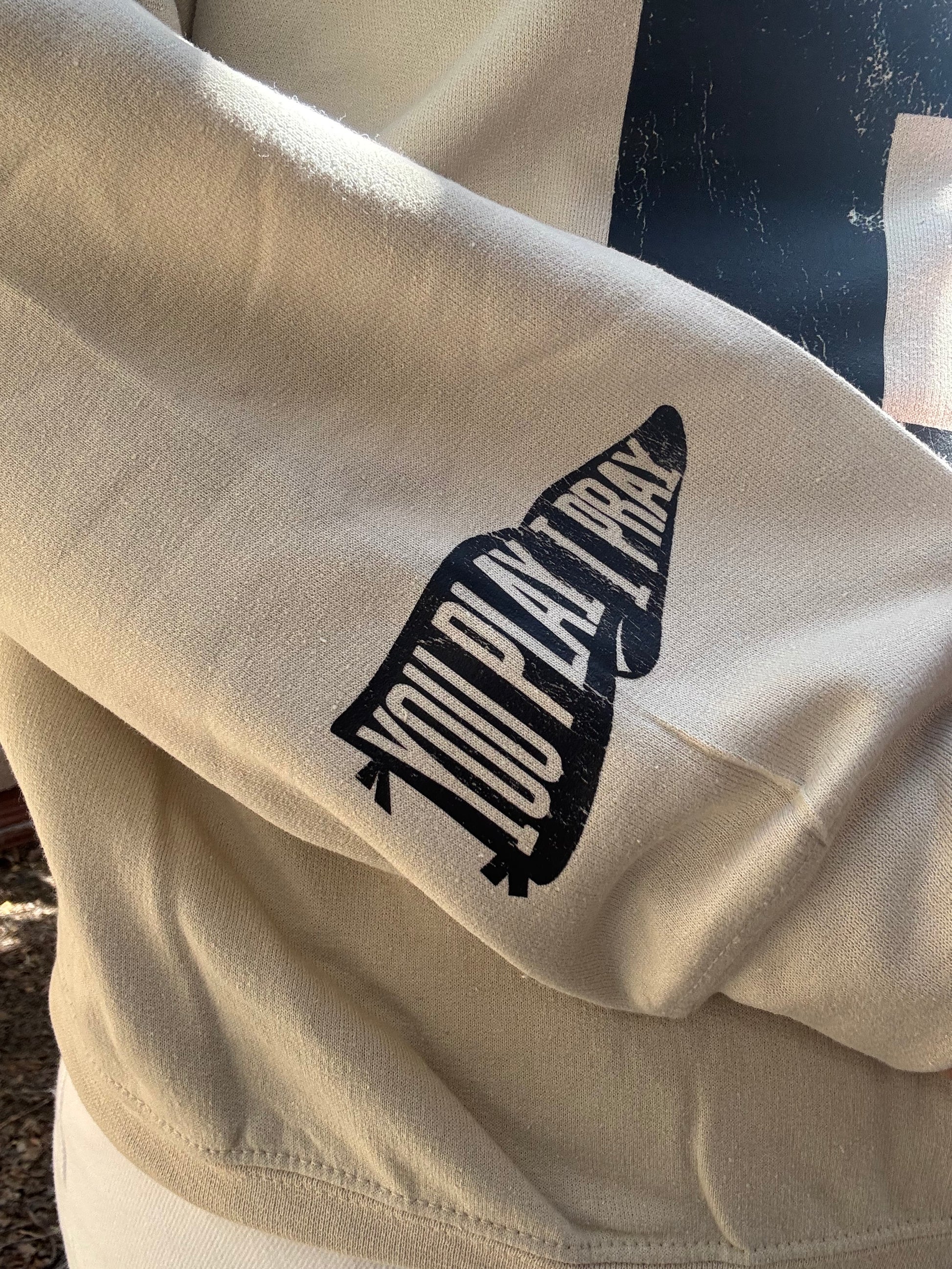 All designs include our “you play I pray” pennant flag on the right sleeve and you get to tell us what you would like on the other sleeve! Any school colors can be printed and all look so pretty.