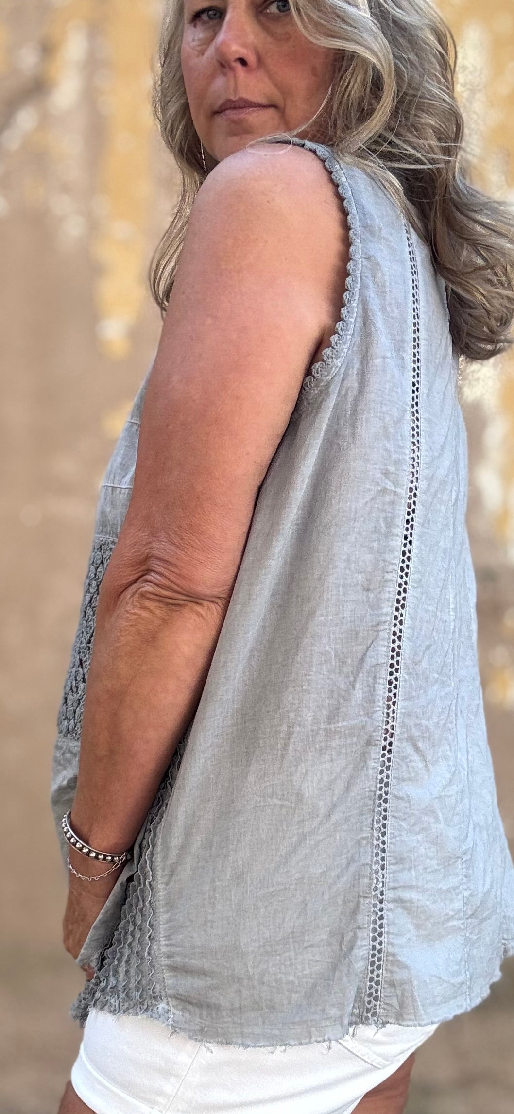Lots of detail and lace is a part of this amazing piece. It can be worn as a shirt or a cami. 4 colors pair back with all the Rare Bird pieces.