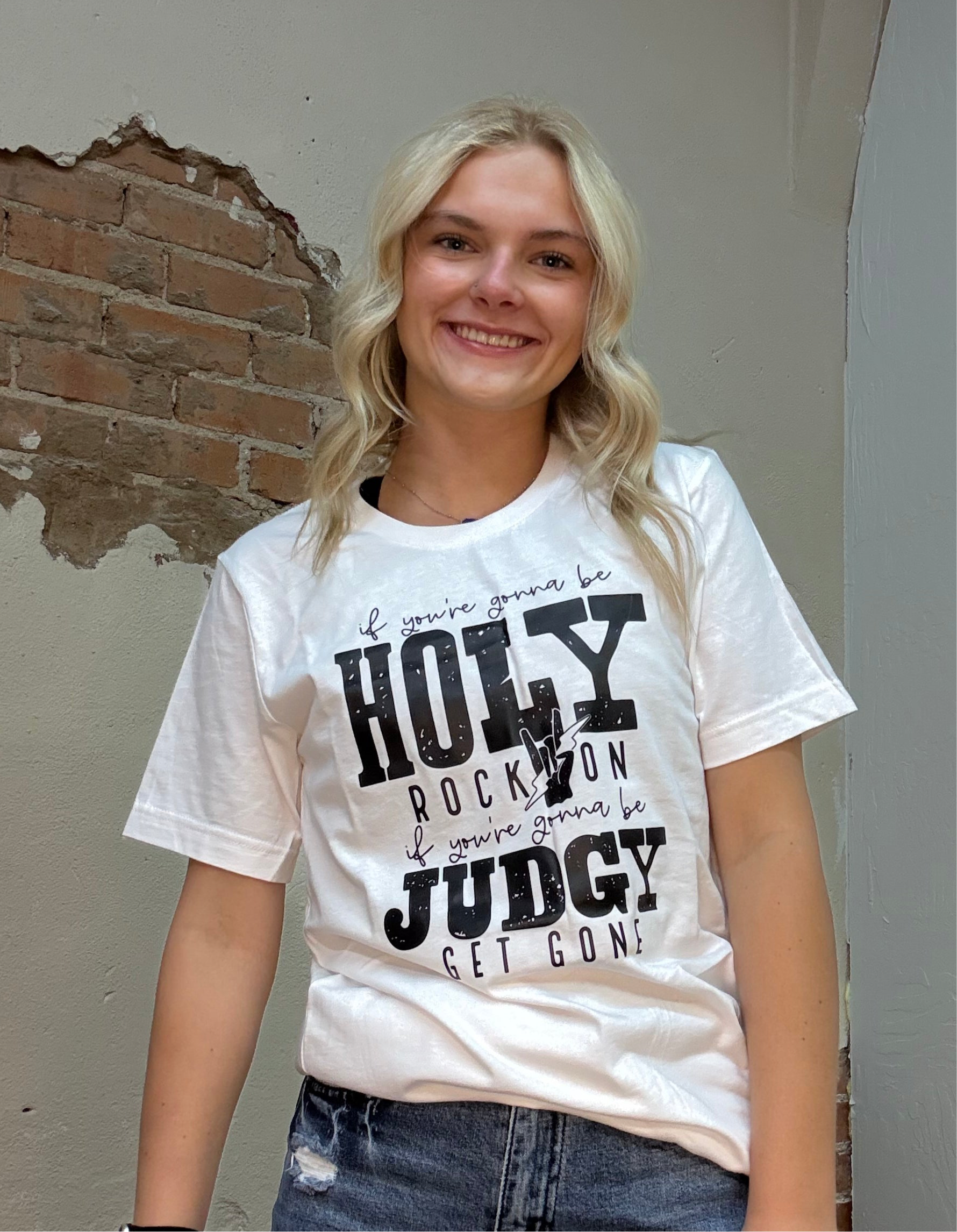 Experience the comfort and style of The Turquoise Pistol's 'If You’re Gonna be Holy Rock on' T-shirt. Made from 100% cotton, this super soft Bella Canvas T-shirt is perfect for those who appreciate the blend of rustic and western style. Ideal for everyday wear, this screen-printed tee is a testament to our passion for crafting and creating. Enjoy the quality and creativity that comes from a small town in northeastern Oklahoma. Experience the comfort and love of all things western with us.