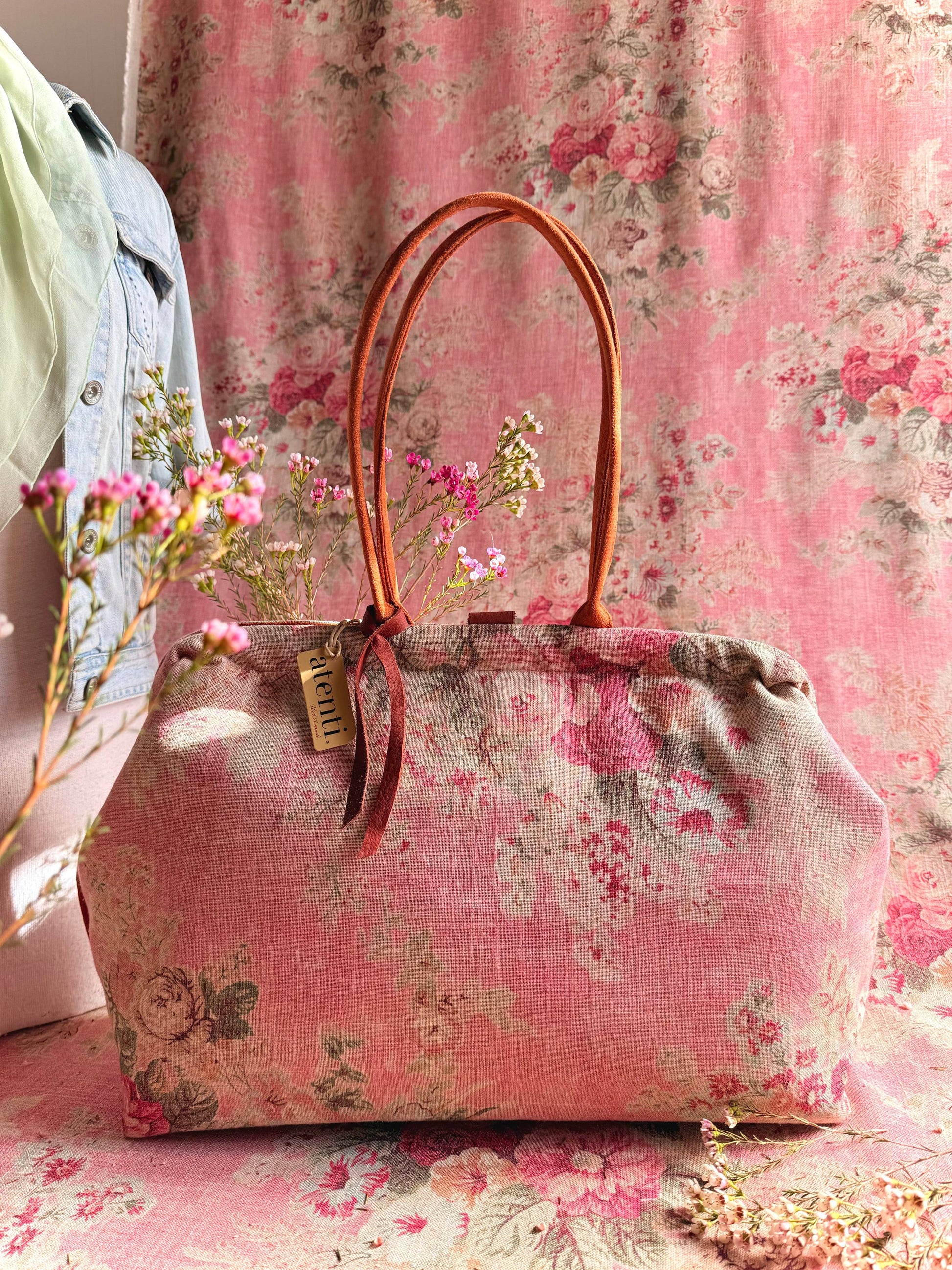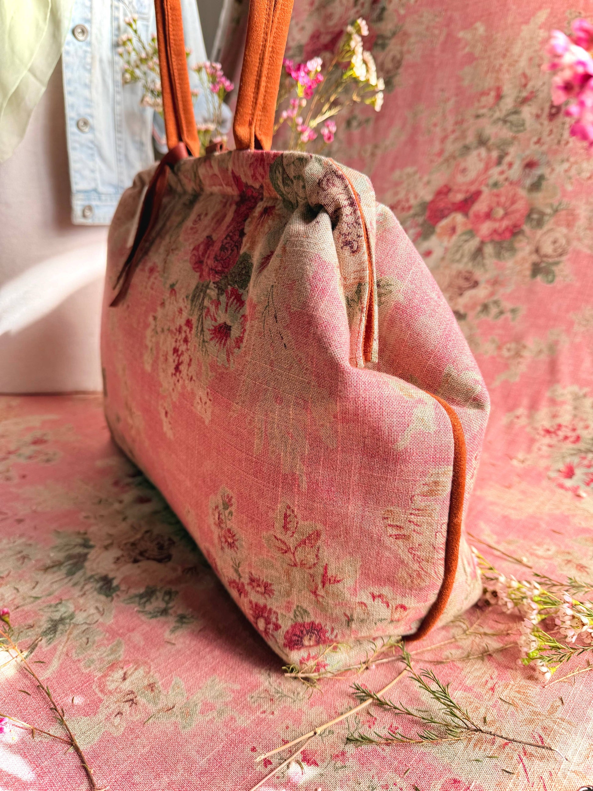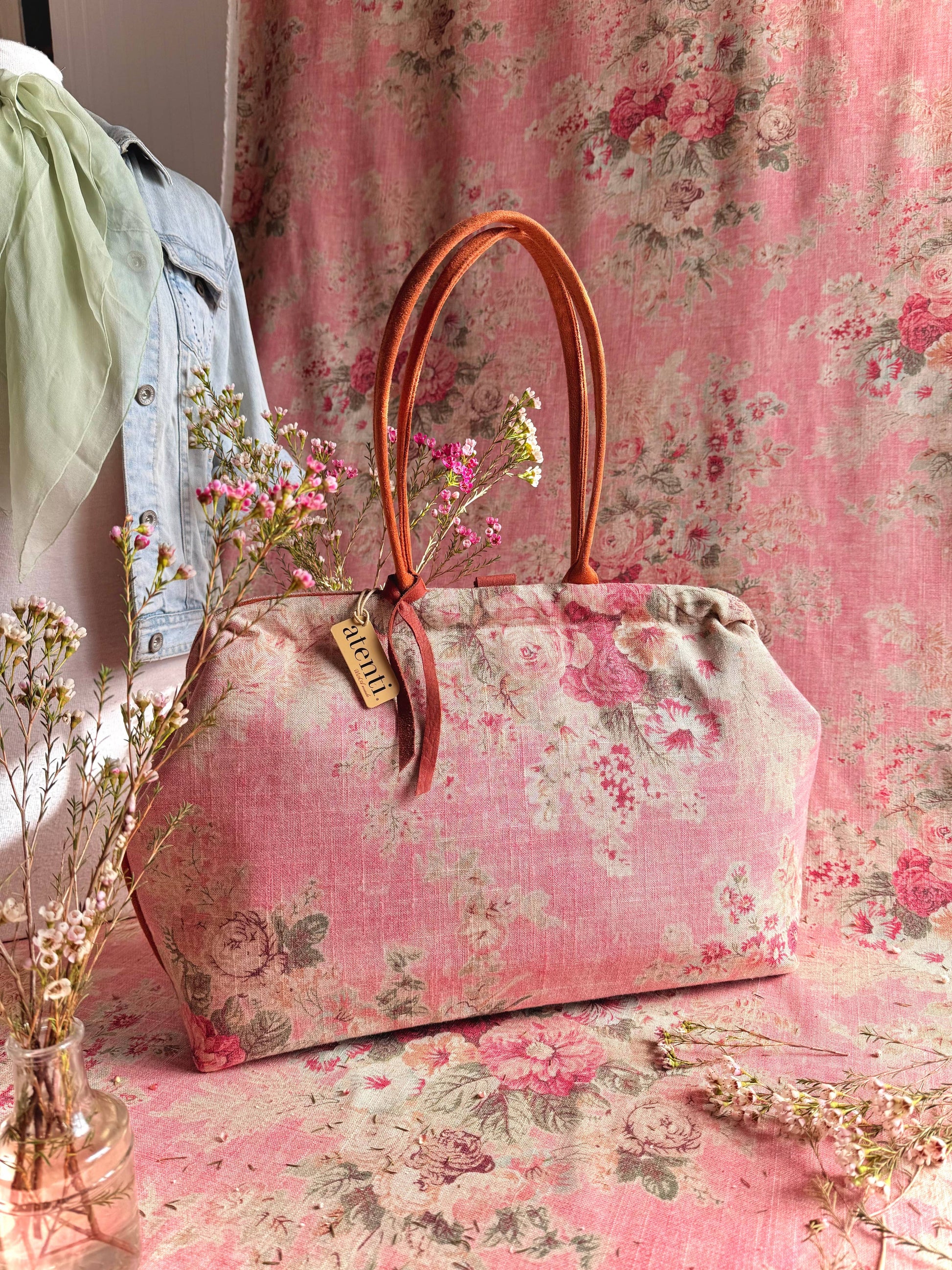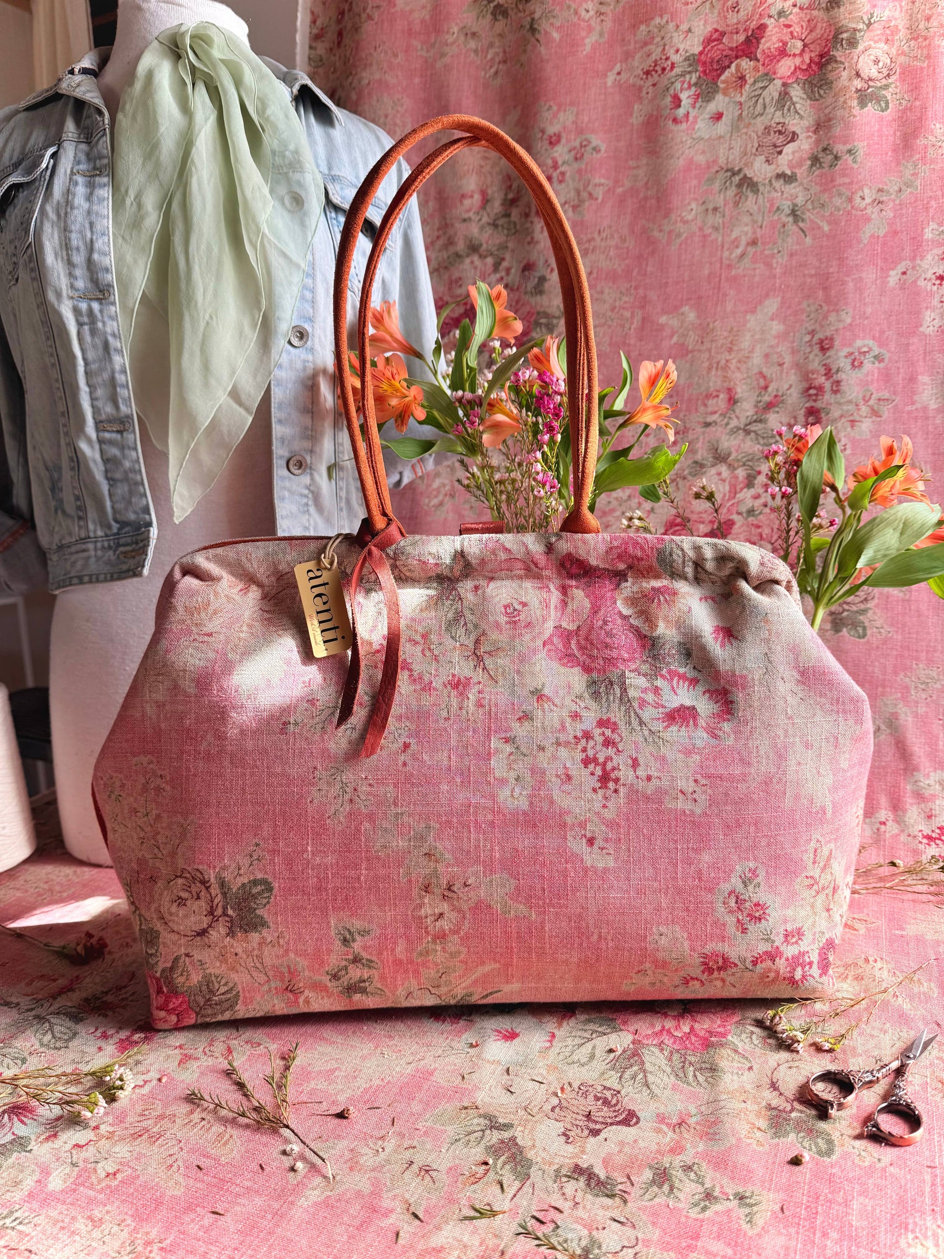 This romantic bag adds a touch of grace to any ensemble. Indulge in timeless elegance, with the Rosewood Pioneer. Showcasing a stunning assortment of delicate florals in warm tones. The Atenti Pioneer carpet bag shows off a fully lined water resistant taffeta interior. Inside are a zippered pocket and an open divided pocket with a cell phone slot. The Pioneer has double 21” straps with a 10’ drop and metal feet.